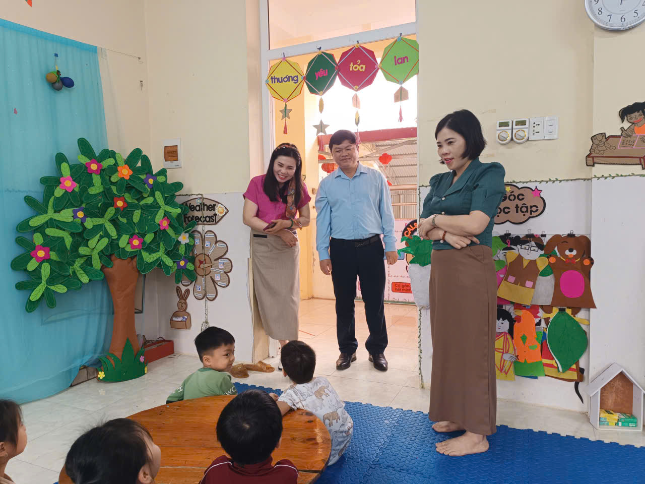 ĐỒNG CHÍ NGUYỄN VĂN THỂ PHÓ CHỦ TỊCH THƯỜNG TRỰC UBND XÃ ĐẾN THĂM, KIỂM TRA CÔNG TÁC CHĂM SÓC, NUÔI DƯỠNG, GIÁO DỤC TẠI TRƯỜNG MẦM NON TIẾN THẮNG